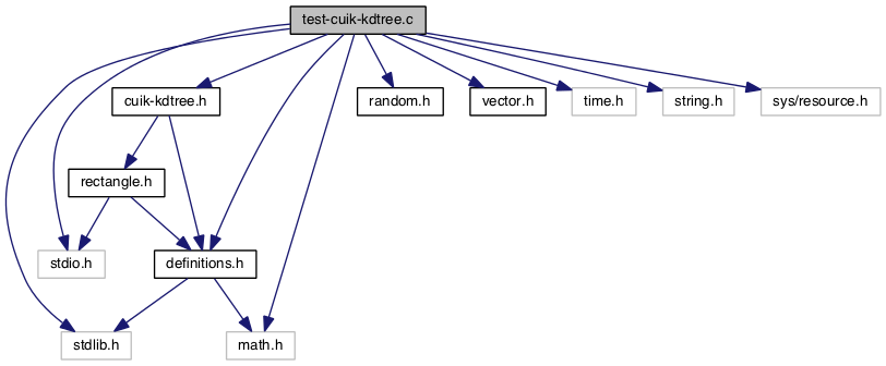 Test program for the cuik-kdtree library. More... #include "cuik-kdtree.h" #include "random.h" #include "definitions.h" #include "vector.h" #include <stdio.h> #include <time.h> #include <stdlib.h> #include <string.h> #include <math.h> #include <sys/resource.h> ![]() Go to the source code of this file.