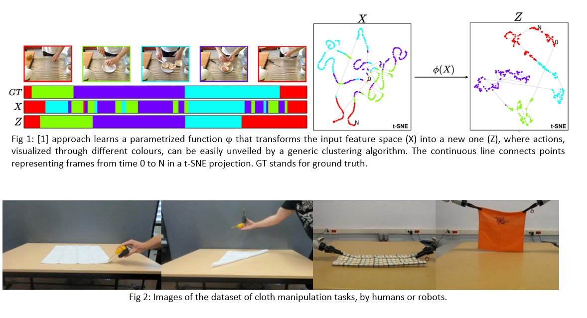 We are seeking a student that will apply our method for action segmentation to actions of cloth manipulation. Using a fully labelled dataset that we already have in our lab, the student will apply our recent results on a new task, design if needed modifications on the model and see if it can generalize, for instance, to tasks that are performed by robots instead of humans.